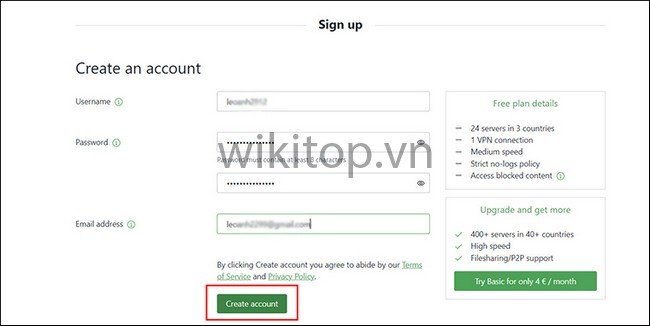 Bước 2: Chọn Create Account (Tạo tài khoản) > Chọn Get Free > Điền thông tin để đăng ký > Chọn Create Account.