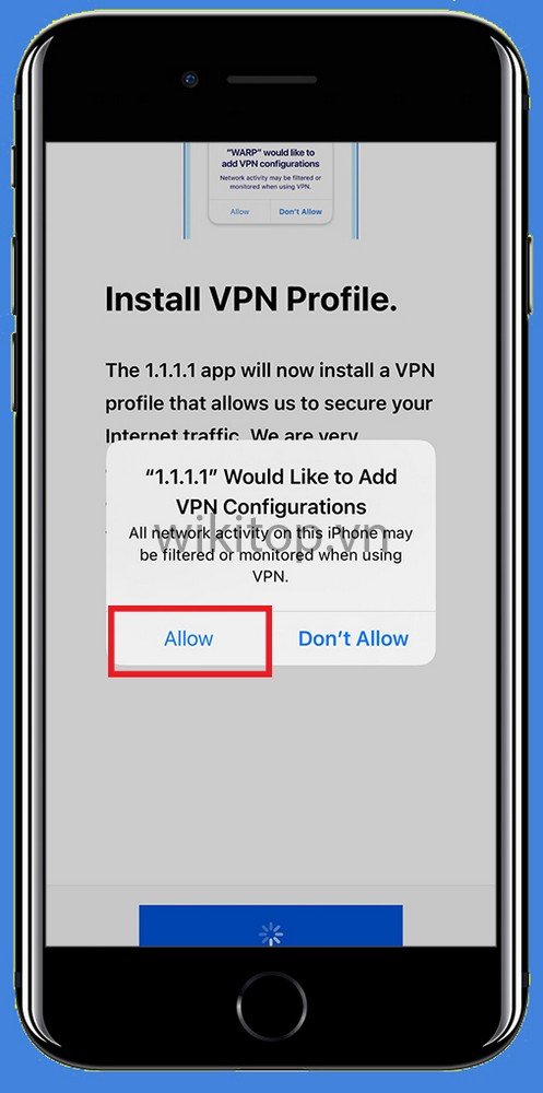 Bước 3: Chọn Allow (cho phép ứng dụng truy cập vào VPN của Anh/chị) > Chọn Install VPN profile.