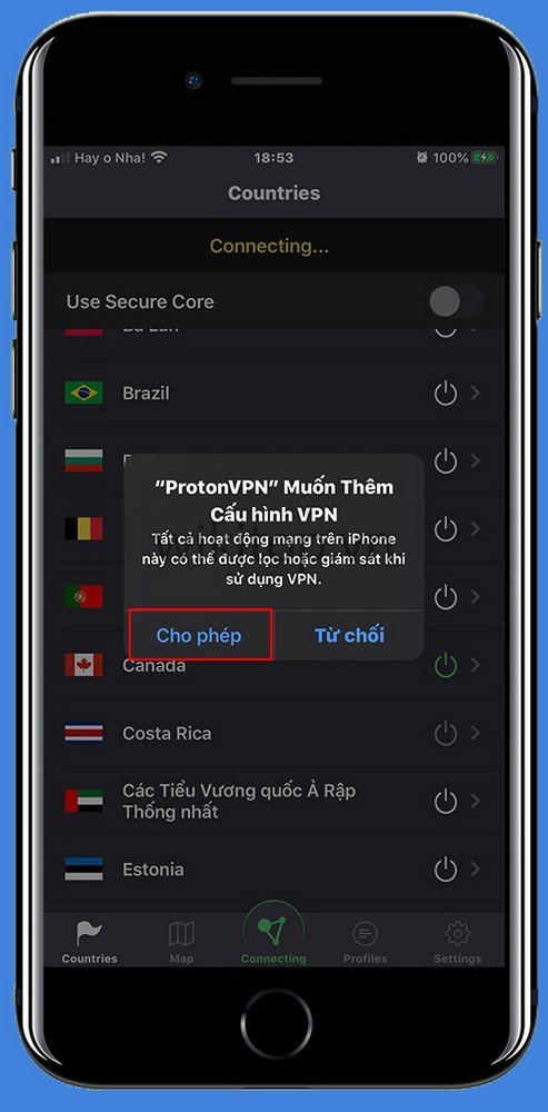 Bước 3: Chọn cho phép để ứng dụng thiết lập mạng với thiết bị của Anh/chị.