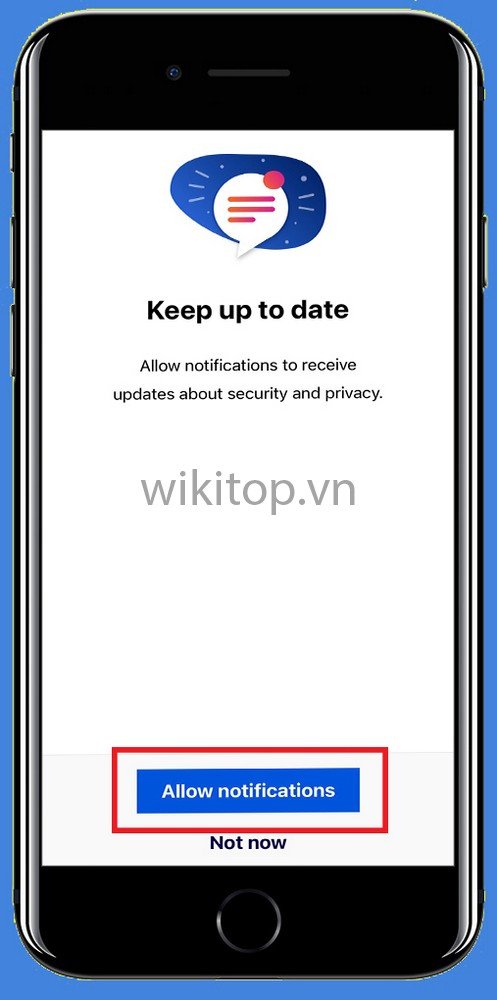 Bước 4: Chọn Allow notifications (Cho phép thông báo) hoặc Anh/chị có thể chọn Not now nếu không muốn nhận thông báo từ ứng dụng.