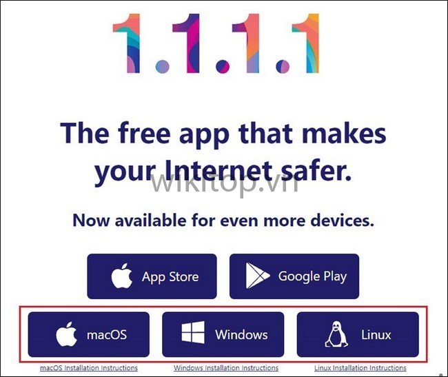 Bước 1: Truy cập vào 1.1.1.1 > Chọn, tải về phiên bản phù hợp với hệ điều hành máy tính của Anh/chị.