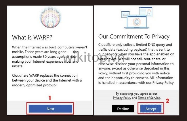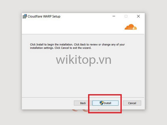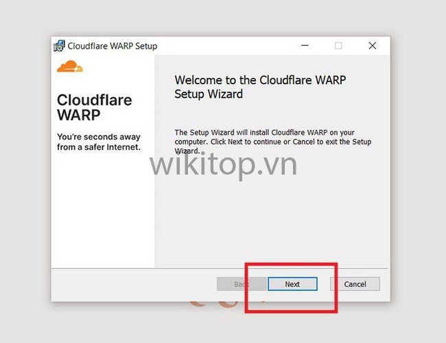 Bước 2: Khởi chạy tập tin Cloudflare WARP Setup > Chọn Next (Tiếp tục) > Chọn Install (Cài đặt).