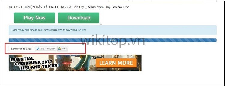 Bước 3: Chọn Download to Local để tải nhạc về máy tính, hoặc chọn Save to Dropbox/ Google Drive để tải file nhạc lên bộ nhớ đám mây tương ứng.
