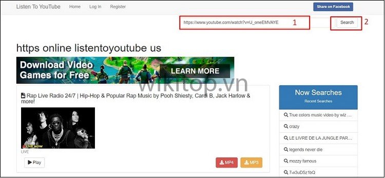 Bước 1: Truy cập vào Listen To YouTube và dán đường link YouTube cần tách nhạc vào khung tìm kiếm. Sau đó bấm Search.