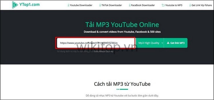 Bước 1: Sao chép đường link YouTube cần tải nhạc và dán vào trang Ytop1.