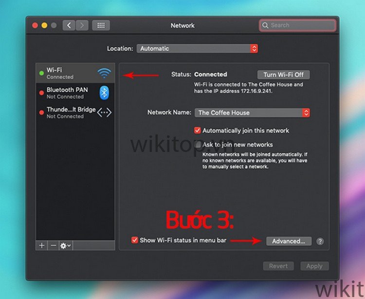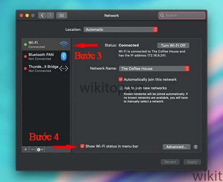 Bước 3: Click WiFi và Tick vào ô Show Wi-Fi status in menu bar để hiện biểu tượng WiFi.