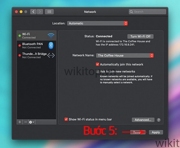 Bước 5: Nhấn Apply để hoàn tất việc xóa hoặc quên mạng WiFi trên MacBook.