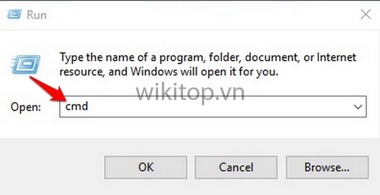 Bước 1: Anh/chị dùng tổ hợp phím Windows + R mở hộp thoại Run và gõ “cmd”.