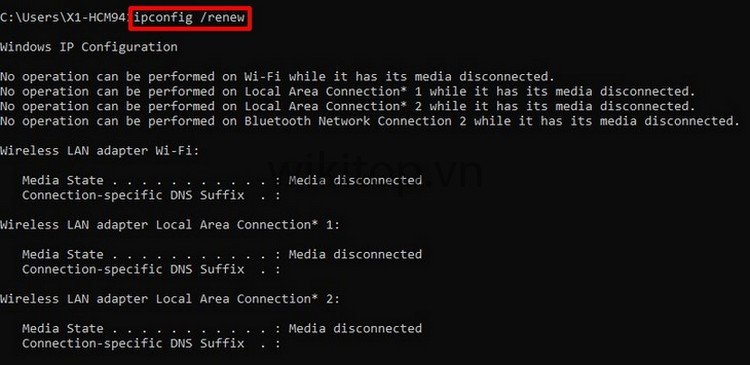 Bước 3: Anh/chị nhập ipconfig /renew sau đó Enter.