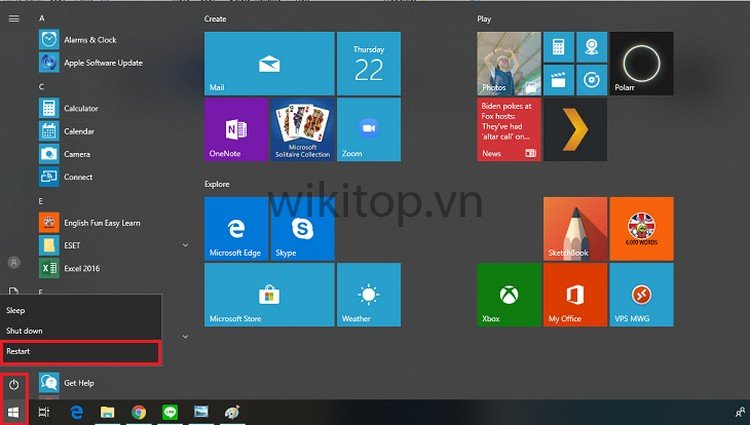 Cách khởi động lại laptop Windows.