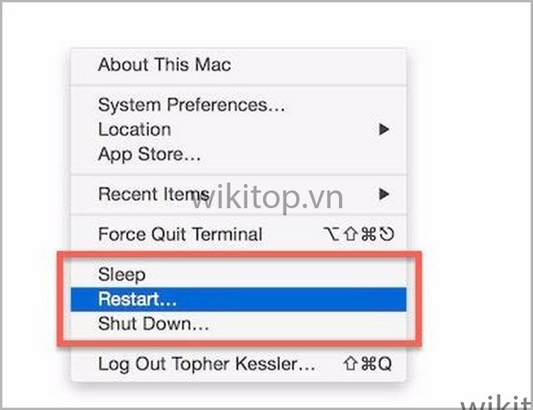 Tương tự với MacBook, Anh/chị có thể thử khởi động lại để khắc phục lỗi laptop không kết nối được WiFi bằng cách chọn Menu và nhấn Restart.
