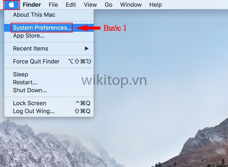 Bước 1: Nhấn biểu tượng Apple và truy cập vào mục System Preference.
