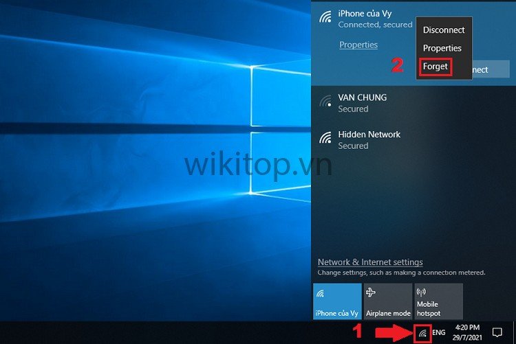 Cách xóa mạng WiFi trên laptop Windows.