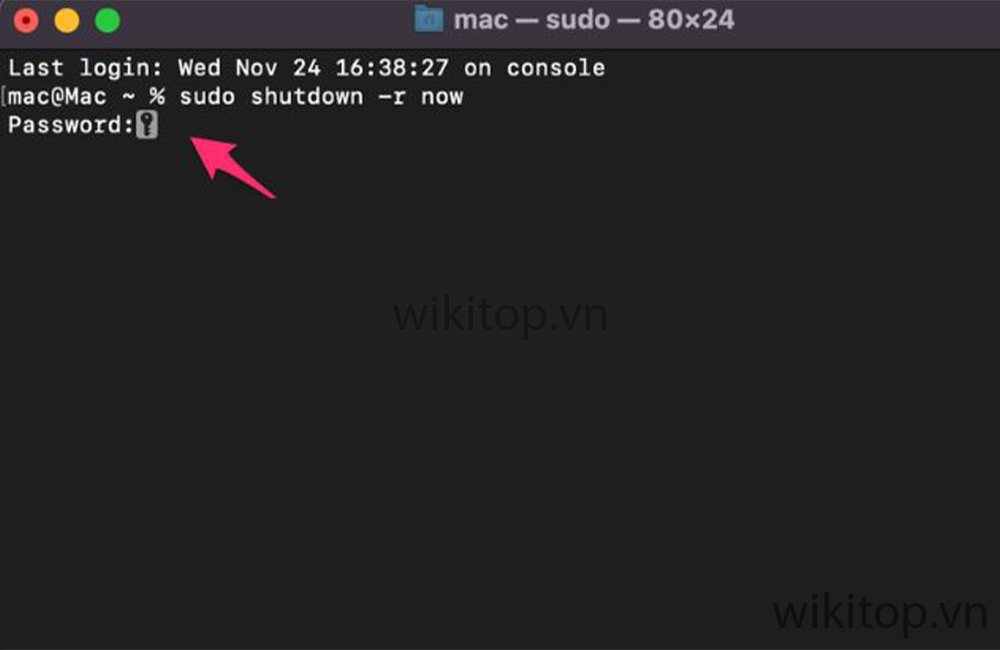 - Bước 3: Gõ lệnh sudo shutdown -r now, rồi nhập Password và máy sẽ tự động tắt.