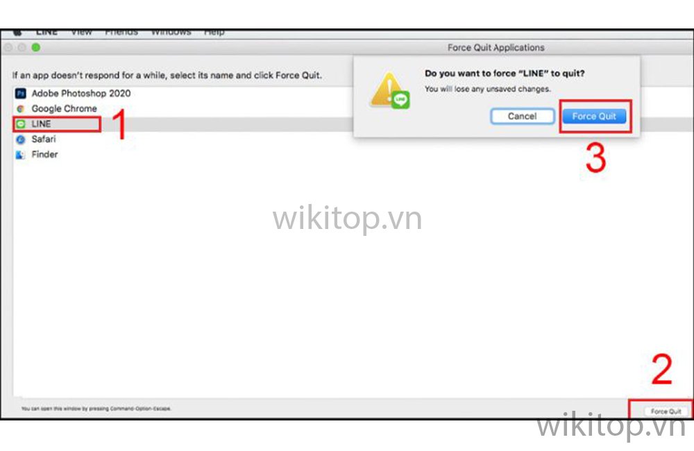 - Bước 3: Nhấn tiếp vào Force Quit ở cửa sổ đang hiển thị để hoàn thành.