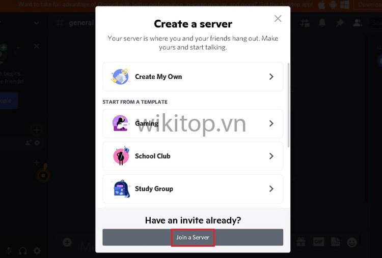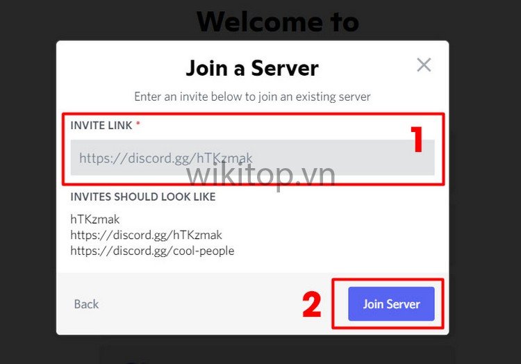 Bước 3: Anh/chị điền link của server mà bạn muốn tham gia và chọn Join Server.