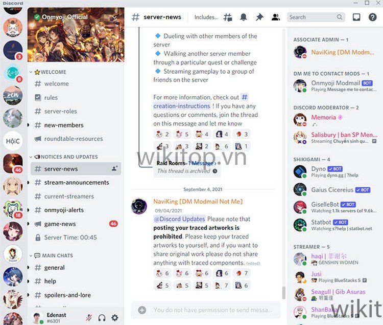 Việc phân loại thành viên theo vai trò này sẽ giúp server được quản lí chặt chẽ và ngăn nắp hơn, đồng thời có thể nhận thông báo riêng cho từng nhóm vai trò cụ thể.