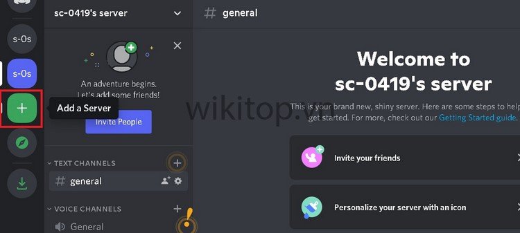 Bước 1: Để tham gia vào một server khác, Anh/chị chọn vào biểu tượng dấu + (Add a Server) nằm ở thanh bên trái của màn hình.
