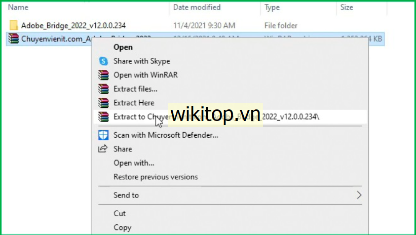 Bước 1: Ta tiến hành giải nén phần mềm Adobe Bridge 2022
