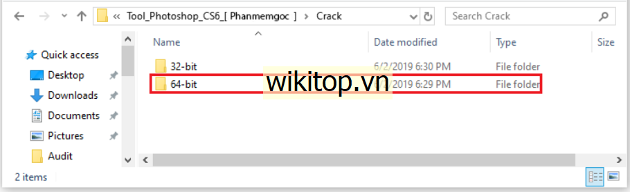 Bước 5: Anh/chị hãy mở thư mục Cr@ck lên. Sau đó mở thử mục với đúng kiến trúc tương thích (ví dụ máy Anh/chị 64 Bit thì mở thư mục 64-bit).