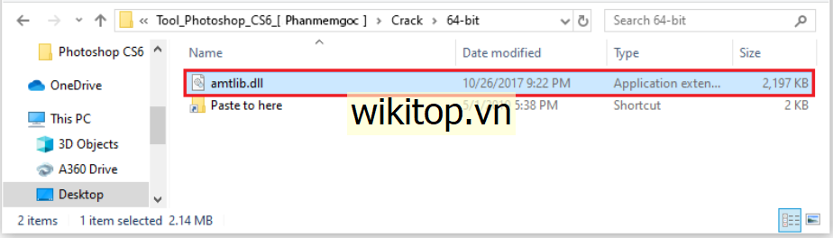 Bước 6: Giải nén file tool cr@ck. Copy file amtlib.dll vào thư mục Paste to here (Click chuột phải vào file amtlib.dll chọn Copy. Sau đó Click chuột phải vào thư mục Paste to here và chọn Paste). Và tùy chọn như hình dưới.