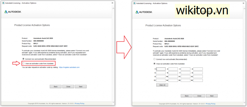 - Tiếp đó chọn I have an activation code from Autodesk để hiện ô nhâp key như hình dưới nhé (Nếu không hiện ô nhập key hãy chọn Next nhé)