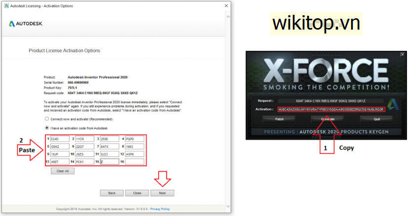 Bước 10: Copy code ở Activation và Paste vào như hình dưới. Sau đó chọn Next… (Lưu ý là Anh/chị cần copy đủ 57 Kí tự Key như hình dưới nhé)
