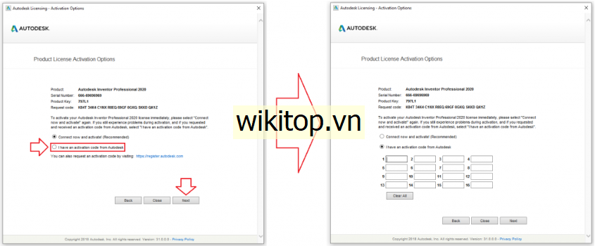- Tiếp đó chọn I have an activation code from Autodesk để hiện ô nhâp key như hình dưới nhé (Nếu không hiện ô nhập key hãy chọn Next nhé)