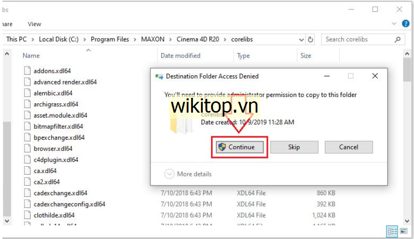 Bước 3: Copy file “c4dp_20.0.30.xdl64” vào theo đường dẫn “C:\Program Files\MAXON\Cinema 4D R20\corelibs
