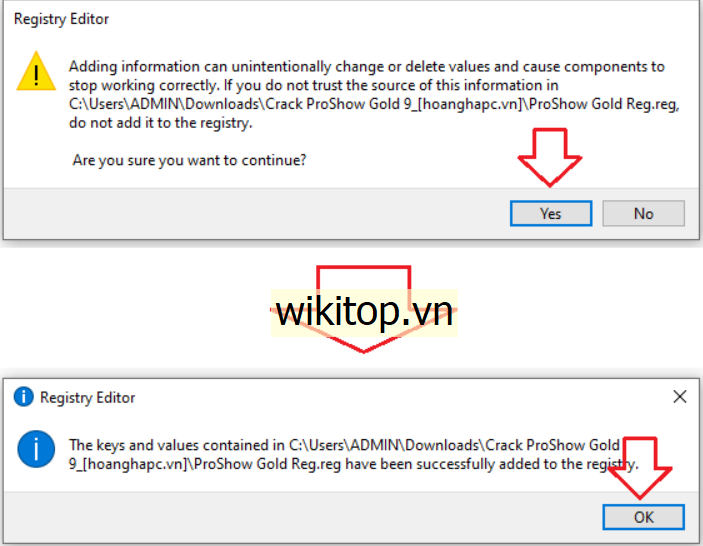 Bước 6: Nháy đúp vào file ProShow Gold Reg.reg trong thư mục cr@ck và tùy chọn như hình dưới