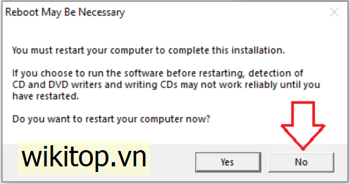 - Phần mềm yêu cầu Reboot thì chọn No nhé