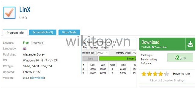 - LinX: Là chương trình kiểm tra sức chịu đựng liên quan đến các thông số khác của laptop, thường sử dụng sau mỗi lần điều chỉnh laptop. Tải LinX tại đây.