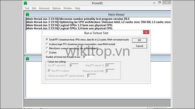 - Prime95: Là chương trình đánh giá sức chịu đựng của laptop được dùng phổ biến, có thể hoạt động liên tục để kiểm tra. Tải Prime95 tại đây.