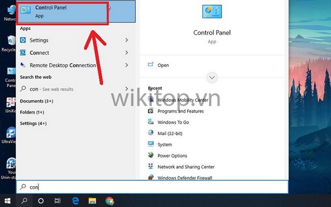 Bước 1: Đầu tiên, Anh/chị hãy tìm Control Panel trong ô tìm kiếm.