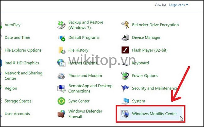 Bước 2: Tiếp đó, Anh/chị hãy tìm chọn mục Windows mobility center.