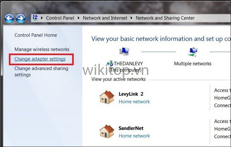 Bước 4: Anh/chị nhấp chọn Change adapter settings (Thay đổi cấu hình bộ chuyển đổi).