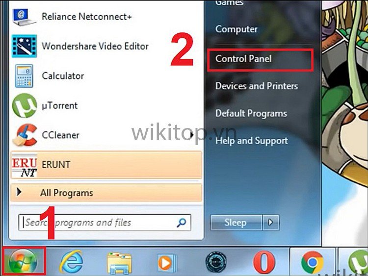 Bước 1: Anh/chị cũng vào Start > chọn Control Panel (Bảng điều khiển).