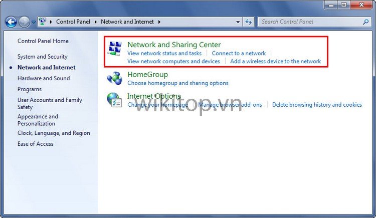 Bước 3: Anh/chị chọn Network and Sharing Center (Trung tâm kết nối và chia sẻ).