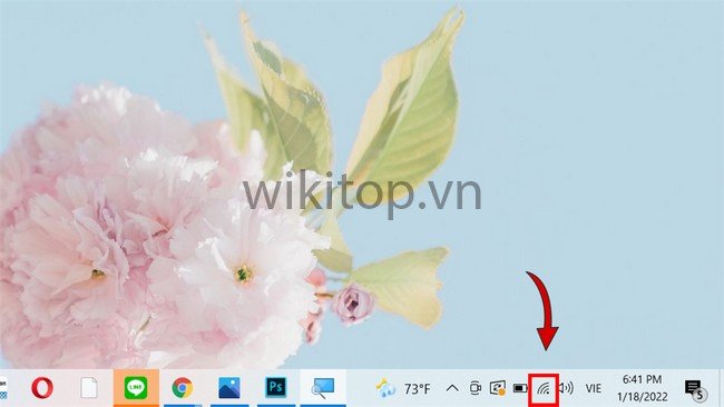 Bước 1: Ở thanh Taskbar > Nhấn chọn biểu tượng Wi-Fi.