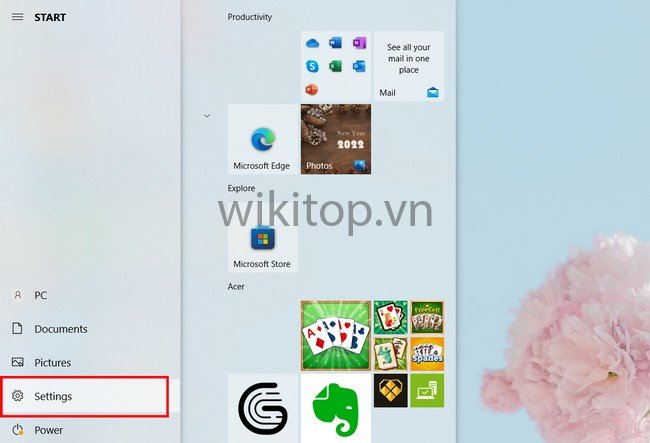 Bước 1: Vào Settings (biểu tượng hình răng cưa).