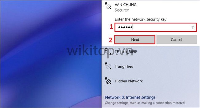 Bước 4: Nhập mật khẩu > Nhấn Next để kết nối Wi-Fi.