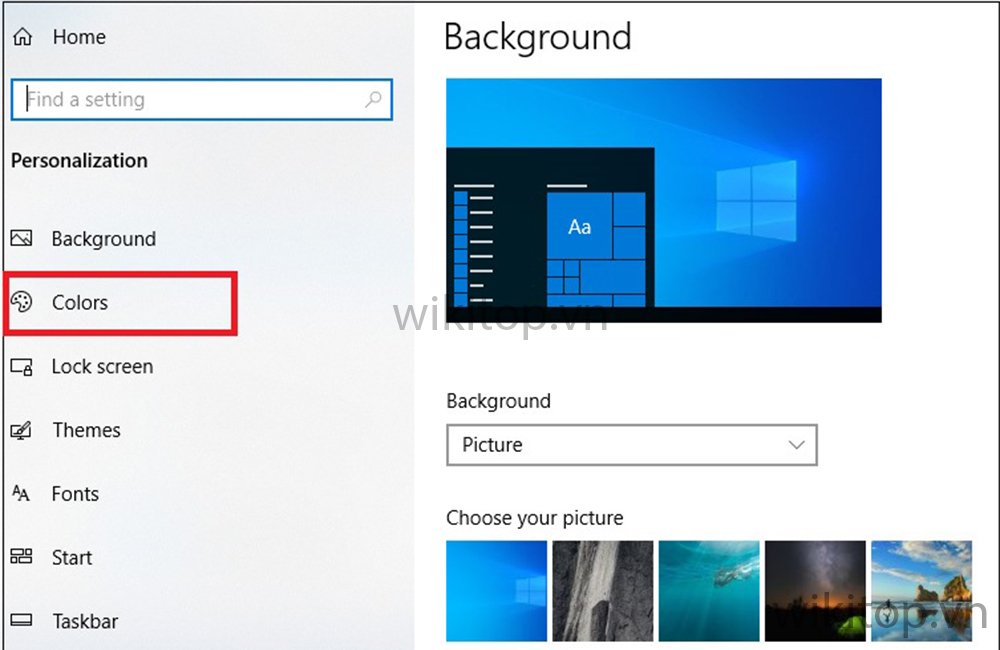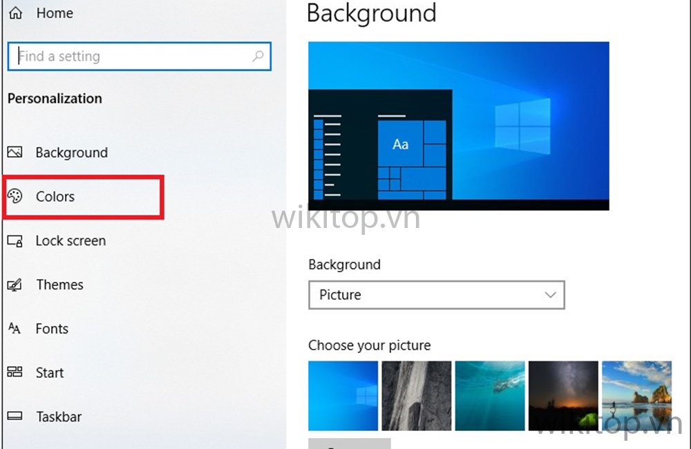 Bước 3: Anh/chị tiếp tục chọn mục Colors (Màu sắc).