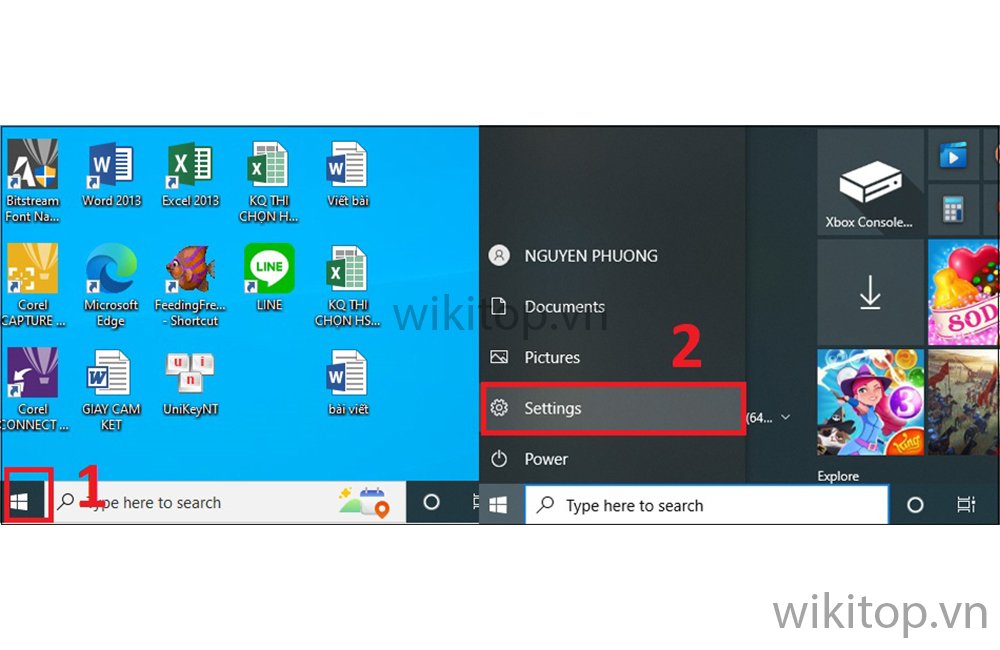 Bước 1: Nhấn vào Start Menu (biểu tượng Windows trên màn hình chính) > Sau đó, chọn Settings (biểu tượng bánh răng).