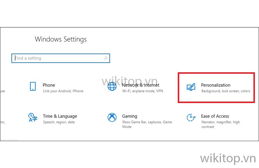 Bước 2: Tại cửa sổ Settings, Anh/chị chọn Personalization (Mục cá nhân hóa).