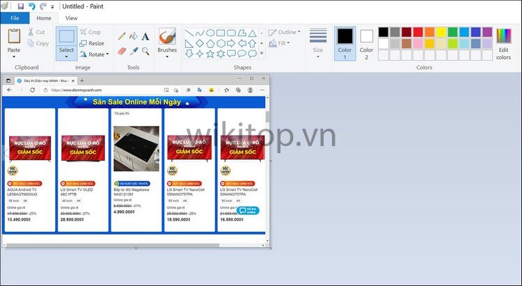 Bước 3: Vào ứng dụng Paint và ấn Ctrl + V để dán hình ảnh vừa chụp.