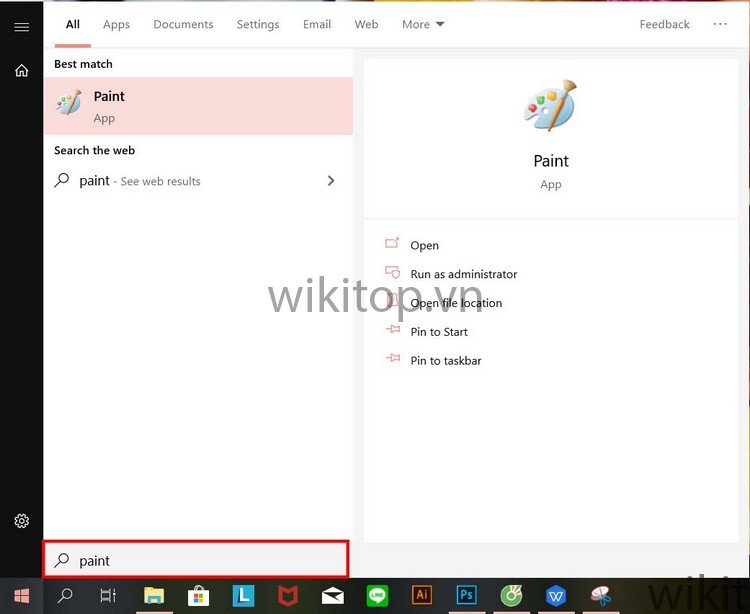 Bước 2: Nhấn phím Windows (hình cửa sổ) trên bàn phím. Nhập vào từ khóa tìm kiếm Paint.