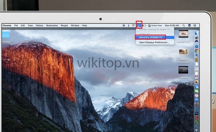 Bước 9: Anh/chị nhấp vào biểu tượng Airplay (nằm ở phía trên màn hình Macbook), rồi chọn Mirroring máy chiếu của Anh/chị để bắt đầu chia sẻ màn hình.