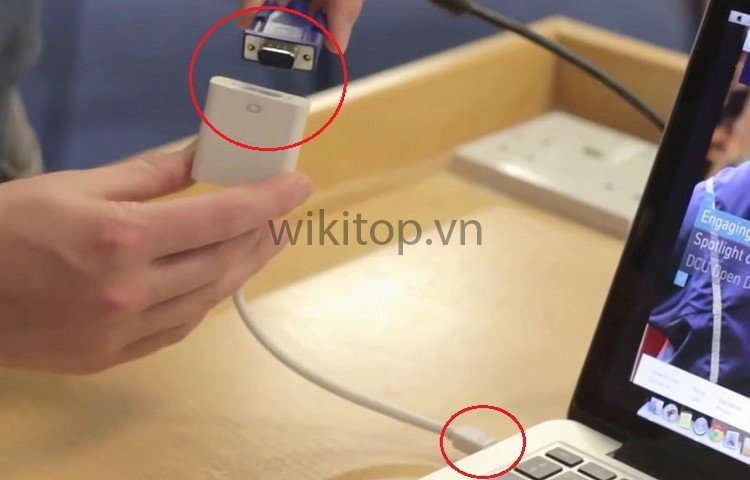 2. Hướng dẫn kết nối Macbook với máy chiếu bằng cáp.