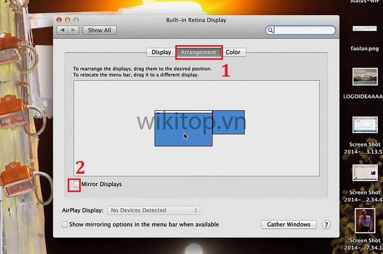 - Bước 3: Nhấp chọn vào ô Mirror Displaysở góc dưới bên trái của cửa sổ.