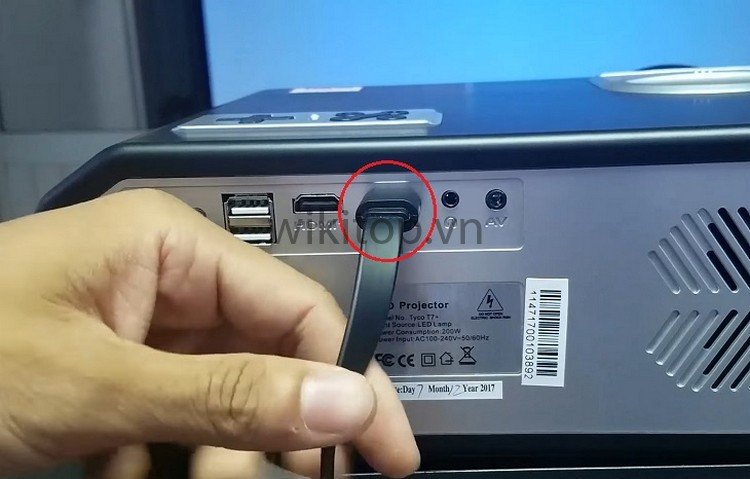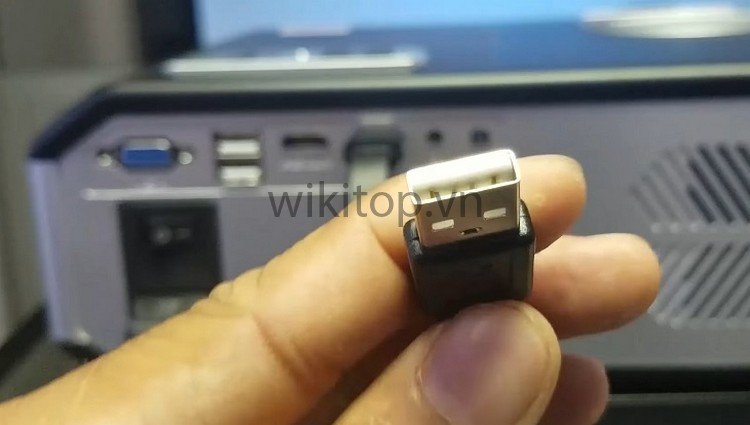 Bước 3: Để cấp nguồn cho HDMI không dây, Anh/chị cắm đầu cổng USB của thiết bị này đầu USB của máy chiếu.